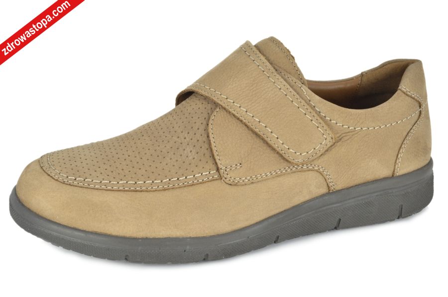 Dodatkowe informacje: Specjalna linia obuwia męskiego o modnym wzornictwie, łatwa wsuwalność, wysokie w palcach. Zapinane na rzepę. Lekkie i elastyczne spody. Wyjmowana wkładka profilowana wykonana z skóry.