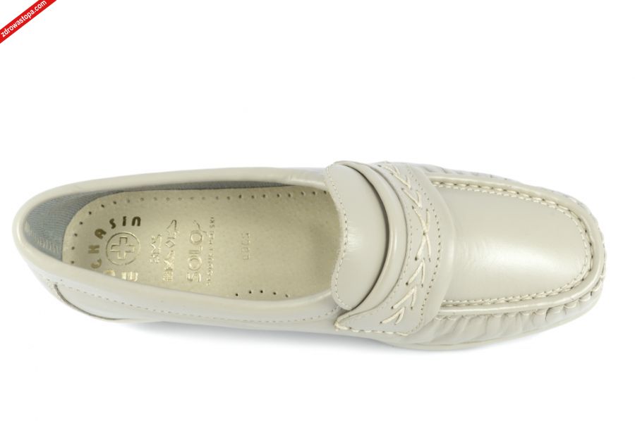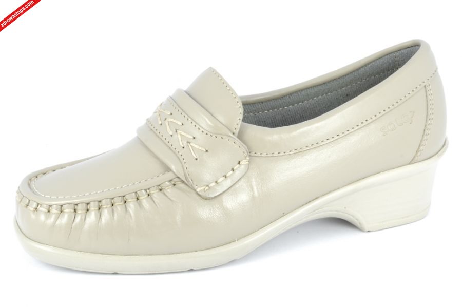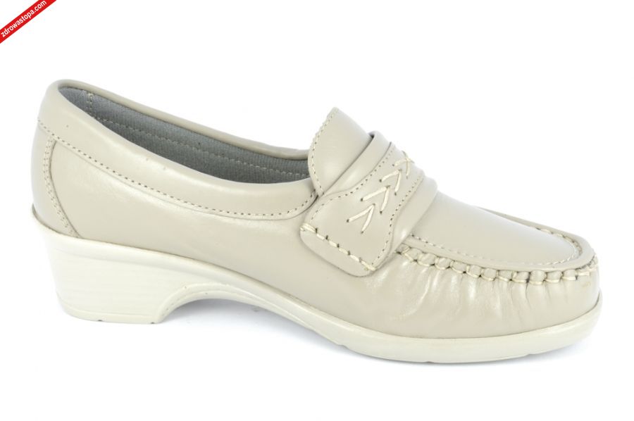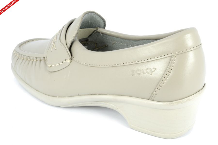 Dodatkowe informacje: klasyczny półbut skórzany firmy SOLO, bardzo miękka skóra w kolorze beżowym o podwyższonej tęgości H, wsuwane, jest to nowy fason na podwyższeniu, wysokość klinu 50 mm,