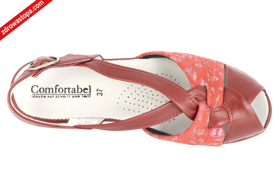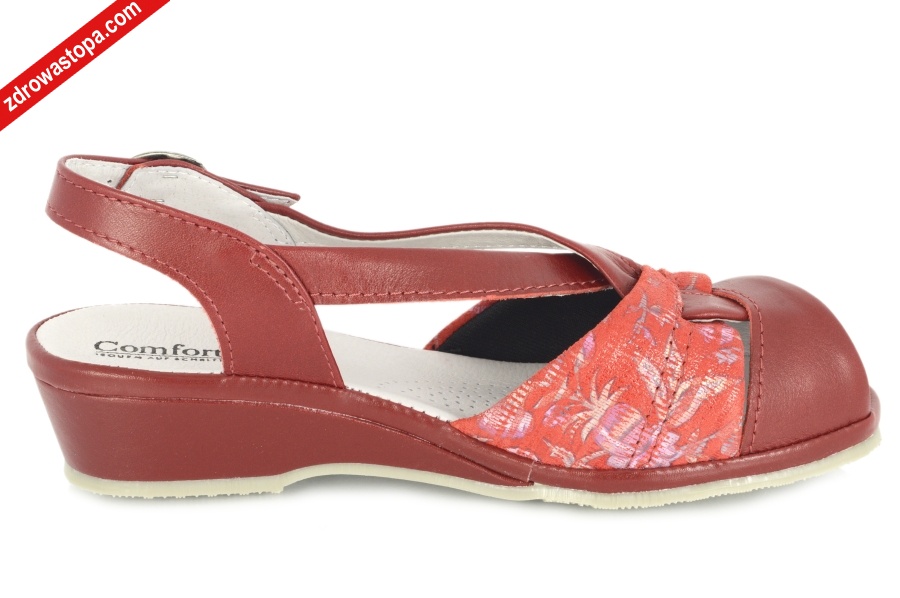 Dodatkowe informacje: klamerka do regulacji obiętości pięty. Jeden z wygodniejszych sandałów na lato. Skórka bardzo miękka dla stóp wrażliwych. Wysokość klinu 35 mm. Spód antypoślizgowy.