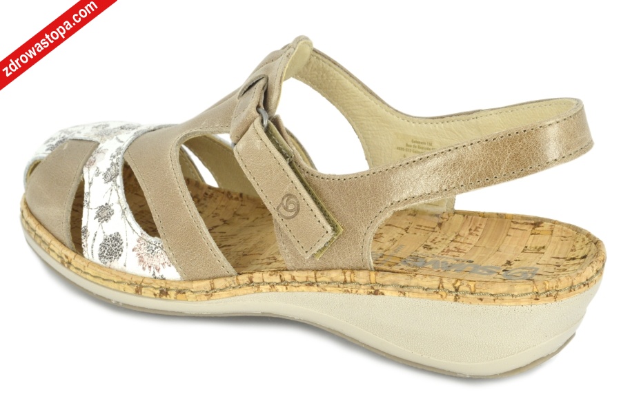 Dodatkowe informacje: Zakryte palce. Skórka bardzo miękka dla stóp wrażliwych. Zapinane na rzepe. Wysokość obcasa 30 mm. Wkładka korkowa, wyjmowana. W poszerzonej tęgości H. Spody bardzo lekkie i elastyczne, antypoślizgowe.