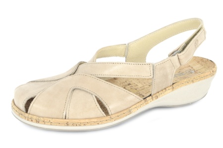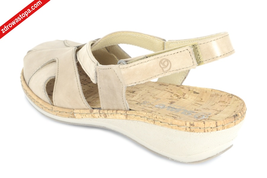 Dodatkowe informacje: Zakryte palce. Skórka bardzo miękka dla stóp wrażliwych. Zapinane na rzepę. Wysokość obcasa 30 mm. Wkładka korkowa, wyjmowana. W poszerzonej tęgości H. Spody bardzo lekkie i elastyczne, antypoślizgowe.