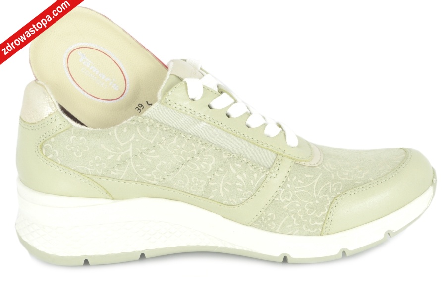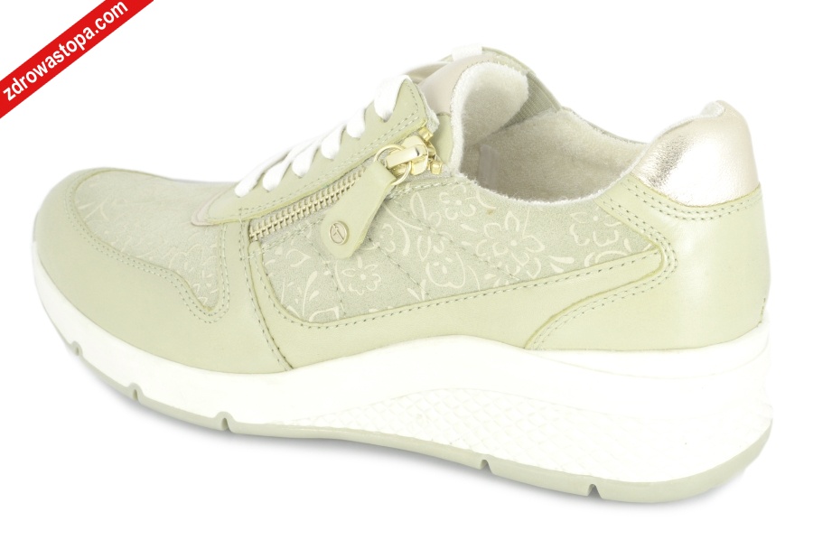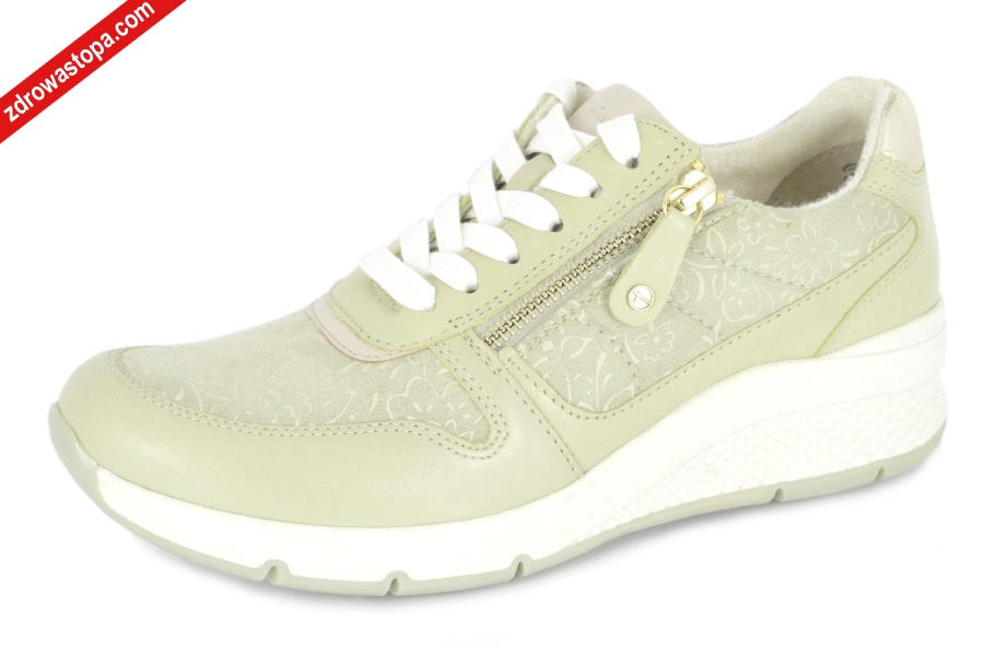 Dodatkowe informacje: Obuwie sznurowane, suwak z boku ułatwia zakładanie, wykonane z miękkiej skóry naturalnej a w przedniej części z rozciągliwego materiału strech który nie uciska na wrażliwe miejsca. Bardzo lekkie, posiadające wyjmowaną wkładkę, elastyczne spody (mały koturn) i antypoślizgową podeszwę.