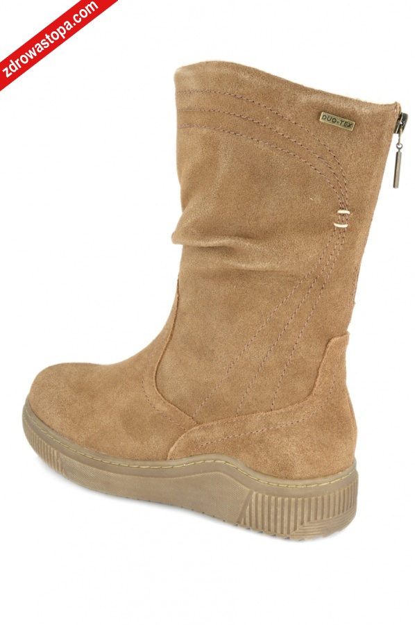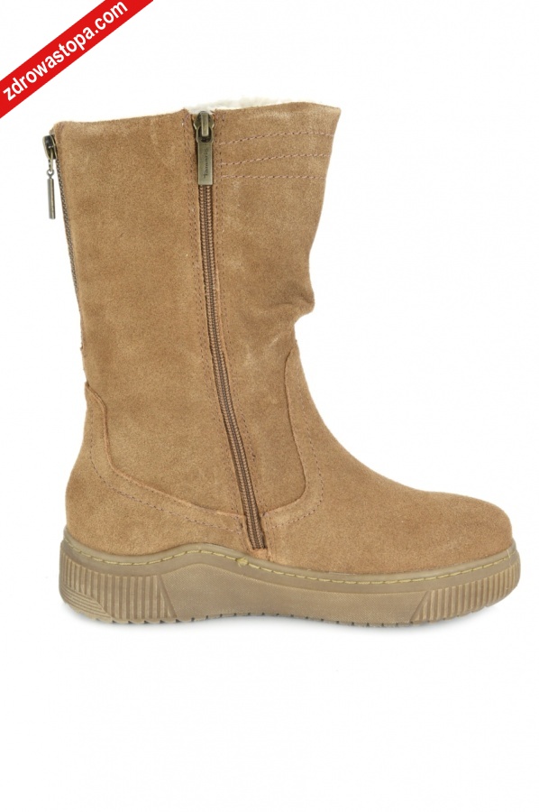Dodatkowe informacje: obuwie zapinane na suwak, ocieplane, posiada nowoczesny fason. Dodatkowy suwak z tyłu pozwala na dopasowanie do szerszej łydki. Grube spody absorbują drgania i dobrze izolują stopę od zimnej powierzchni. Podeszwa poszerzona w palcach i bardzo elastyczna, nie ślizgająca się.