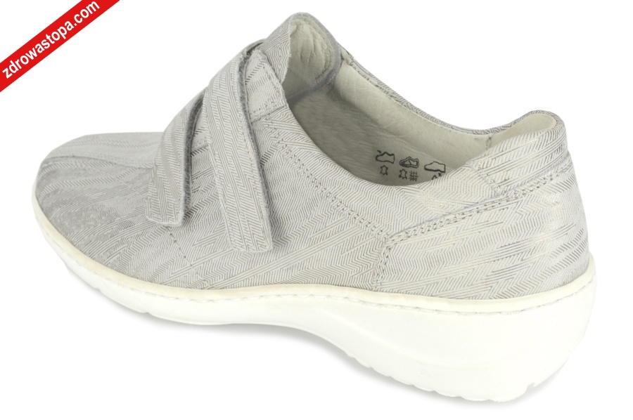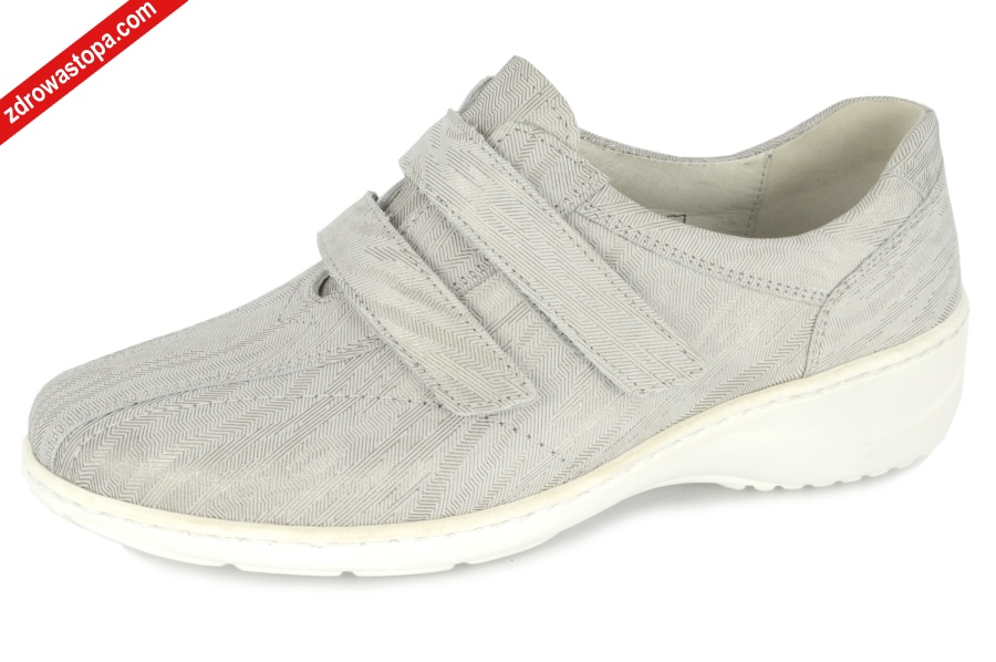 Dodatkowe informacje: Lekka antypoślizgowa podeszwa, wyjmowana wkładka skórzana, mogą być stosowane przez osoby z tzw. "zespołem stopy cukrzycowej”. Spełnią oczekiwania najbardziej wymagających odbiorców. Wzór i kolory zgodne z trendami. Bardzo duża pojemność buta. Obuwie regulowane na dwie rzepy.