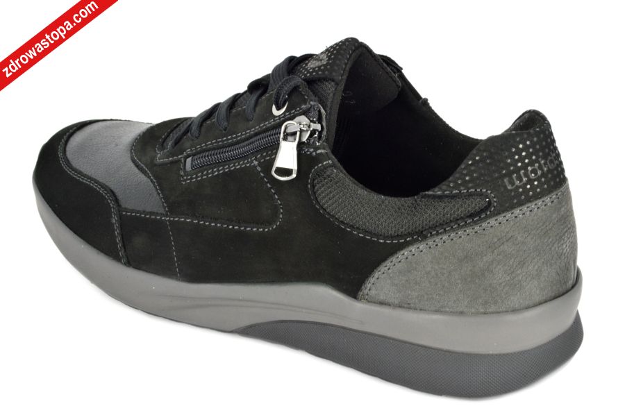 Dodatkowe informacje: Duża tęgość K przeznaczona jest dla Panów z wysokim podbiciem. Wyjmowana wkładka daje możliwość wymiany na własną wkładkę ortopedyczną. Buty wykonane z bardzo miękkiej skóry nubukowej, zapewniają komfort użytkowania. Solidna podeszwa amortyzuje mikro-wstrząsy. Dodatkowo suwak z boku ułatwia zakładanie.