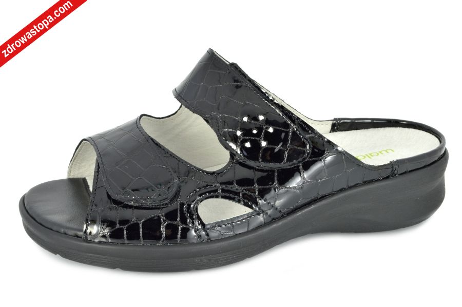 Dodatkowe informacje: bardzo wygodne, minimalna ilość przeszyć i łączeń, lekka antypoślizgowa podeszwa, mogą być stosowane przez osoby z tzw. "zespołem stopy cukrzycowej”. Spełnią oczekiwania najbardziej wymagających odbiorców. Klapek o najszerszej tęgości "M". Zapinany na dwie rzepy dla osób wymagających dokładnej regulacji.