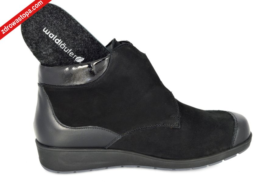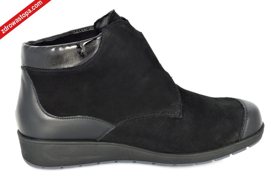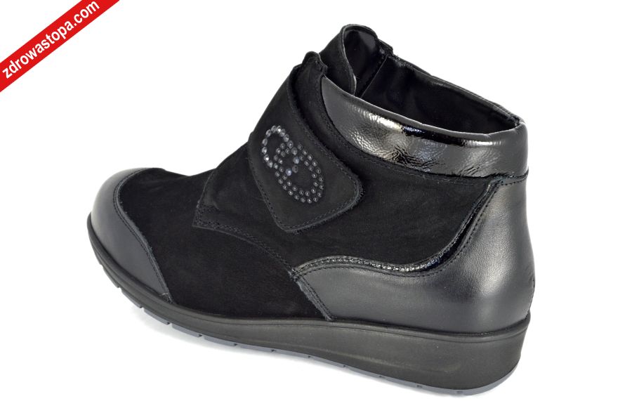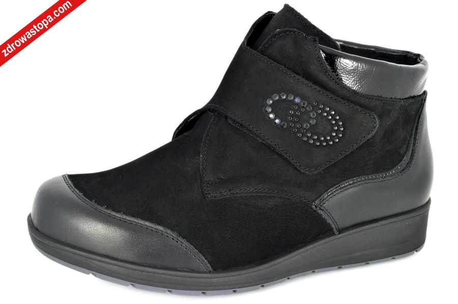 Dodatkowe informacje: wygodne, bardzo szerokie, ocieplane, wysokie w podbiciu i w palcach, regulowane na rzepę. Minimalna ilość przeszyć i łączeń, lekka antypoślizgowa podeszwa. Profilowana, wkładka ocieplana i wyjmowana, którą można zastąpić własną. Mogą być stosowane przez osoby z tzw. "zespołem stopy cukrzycowej”. Spełnią oczekiwania najbardziej wymagających odbiorców.