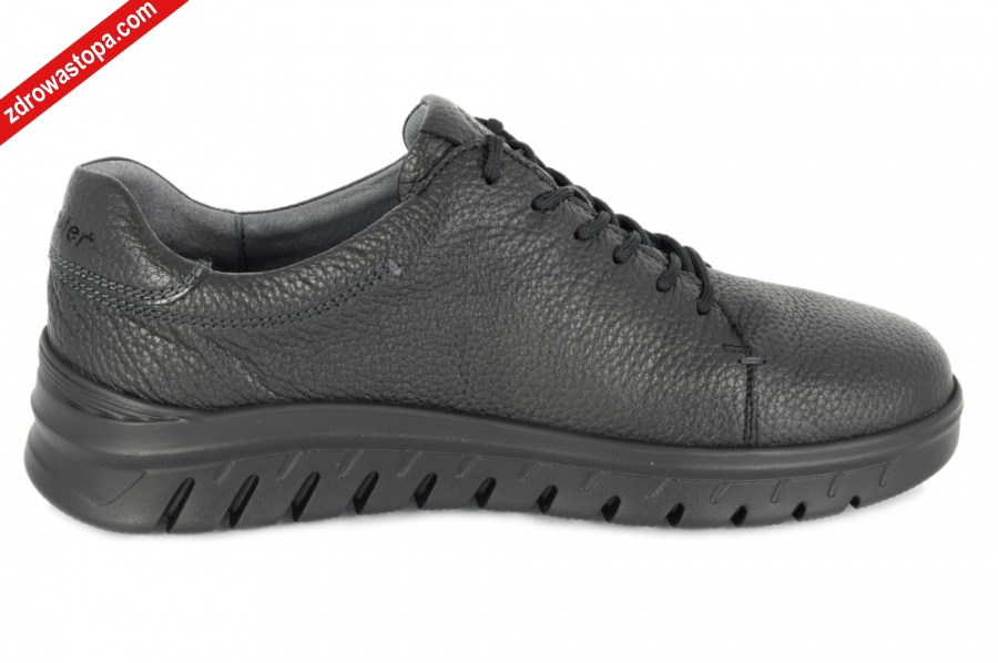Dodatkowe informacje: Powiększona tęgość H przeznaczona jest dla Panów z wysokim podbiciem. Wyjmowana wkładka daje możliwość wymiany na własną wkładkę ortopedyczną. Buty wykonane z bardzo miękkiej skóry jelenia, zapewniają komfort użytkowania. Solidna podeszwa amortyzuje mikro-wstrząsy.
