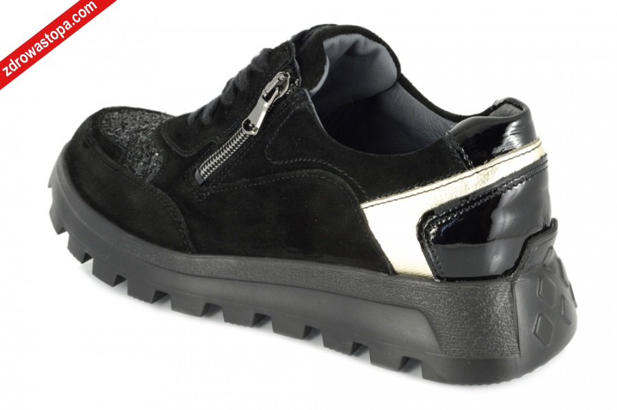 Dodatkowe informacje: Duża tęgość H przeznaczona jest dla Pań z wysokim podbiciem. Wyjmowana wkładka daje możliwość wymiany na własną wkładkę ortopedyczną. Buty wykonane z miękkiej skóry, zapewniają komfort użytkowania. Solidna podeszwa amortyzuje mikro - wstrząsy. Suwak z boku ułatwia zakładanie.
