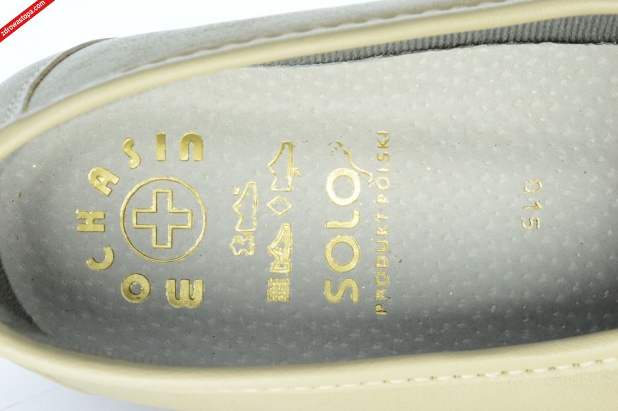 Dodatkowe informacje: klasyczny półbut skórzany firmy SOLO, bardzo miękka skóra w kolorze beżowym o podwyższonej tęgości H, wsuwane, wysokość klinu 30 mm,