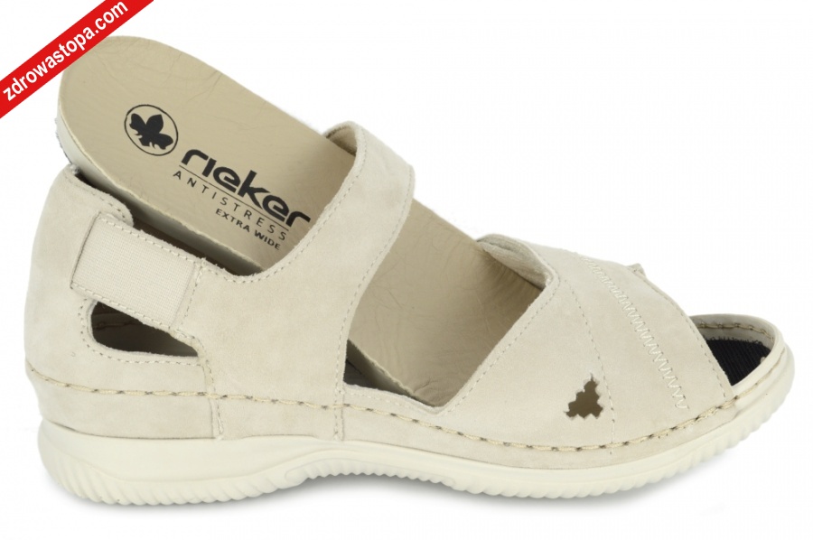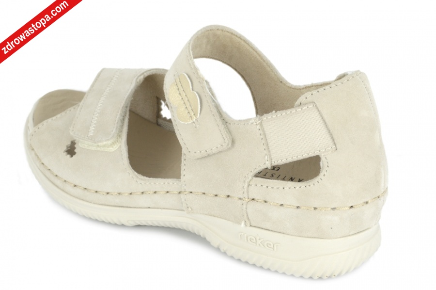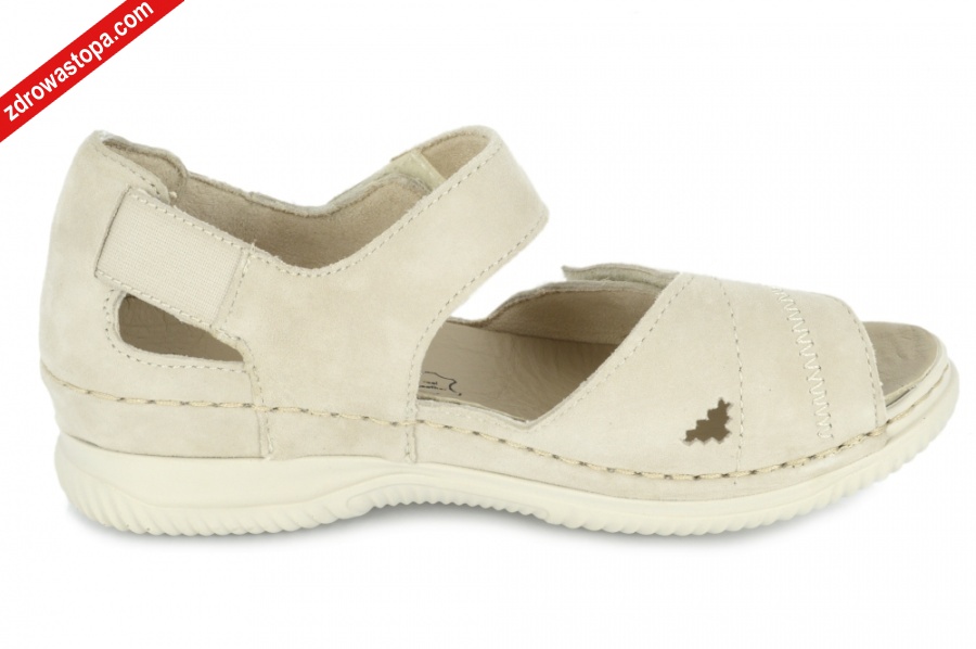 Dodatkowe informacje: Sandały zapinane na 2 rzepy. Bardzo miękka skóra zamszowa, gumki na pięcie dobrze dopasowują i utrzymują obuwie na stopie. Wyjmowana wkładka umożliwia wymianę jej na swoją np.: ortopedyczną. Obuwie w powiększonej tęgości extra weit. Spód elastyczny, antypoślizgowy.