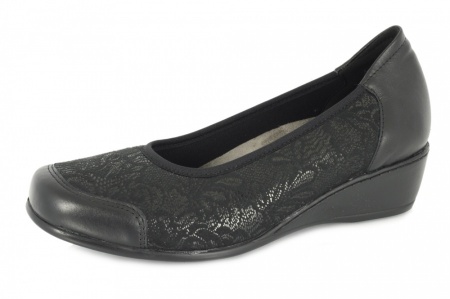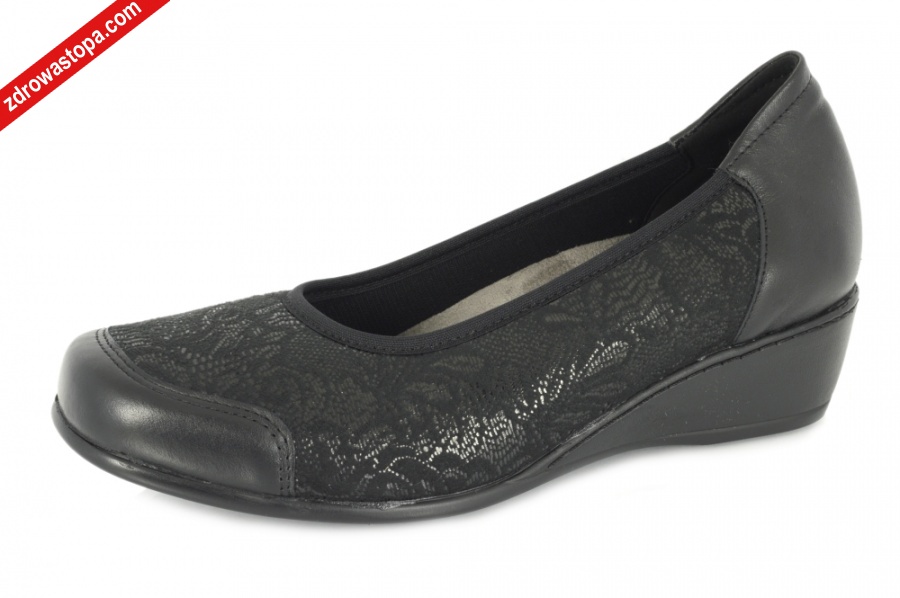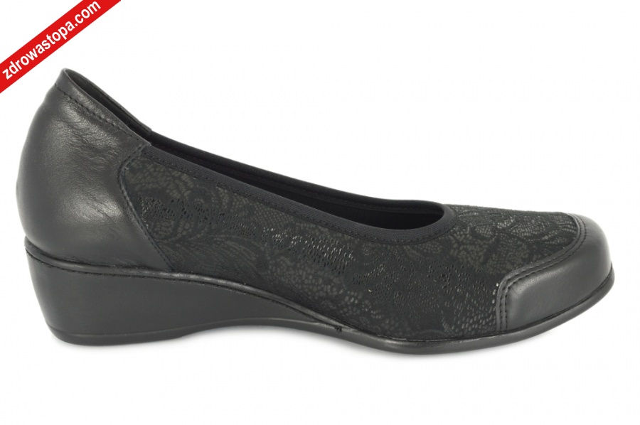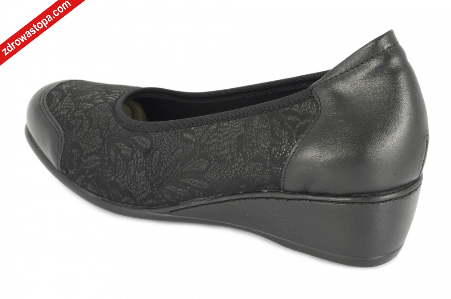 Dodatkowe informacje: Obuwie bardzo miękkie i elastyczne, strechowy materiał dopasowuje się do stopy i nie uciska wrażliwych miejsc, środek wykończony materiałem z pianką. Spód szeroki antypoślizgowy, koturn wysokości 40mm . Wyjmowana profilowana wkładka którą można zastąpić na swoją.