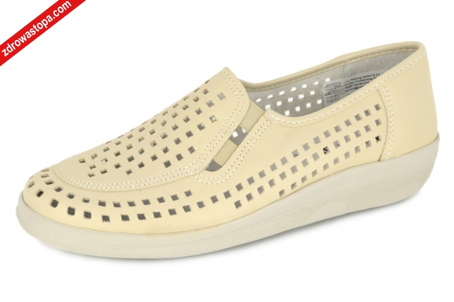 Dodatkowe informacje: Obuwie wsuwane, gumki po bokach dopasowują się do stopy i dobrze ja trzymają, wykonane z miękkiej skóry naturalnej. Bardzo lekkie, posiadające wyjmowaną wkładkę, elastyczne spody i antypoślizgową podeszwę.