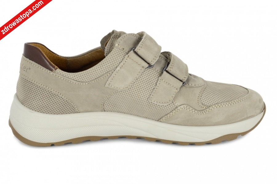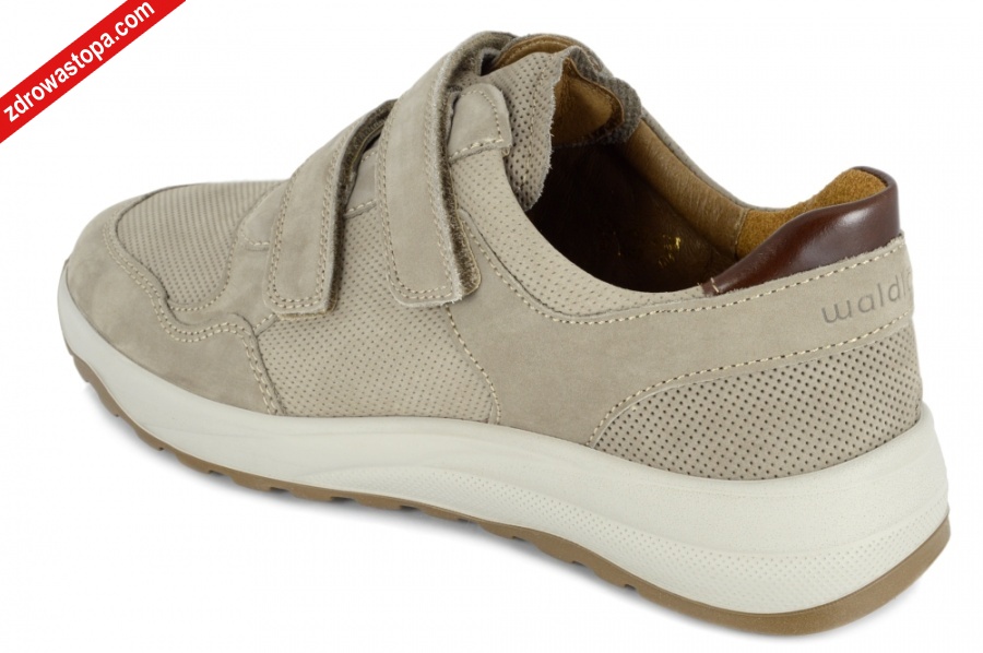 Dodatkowe informacje: Duża tęgość K przeznaczona jest dla Panów z wysokim podbiciem. Wyjmowana wkładka daje możliwość wymiany na własną wkładkę ortopedyczną. Buty wykonane z bardzo miękkiej skóry, zapewniają komfort użytkowania. Solidna podeszwa amortyzuje mikro-wstrząsy. Zapięcie na dwie rzepy zapewnia dobre dopasowanie do stopy.