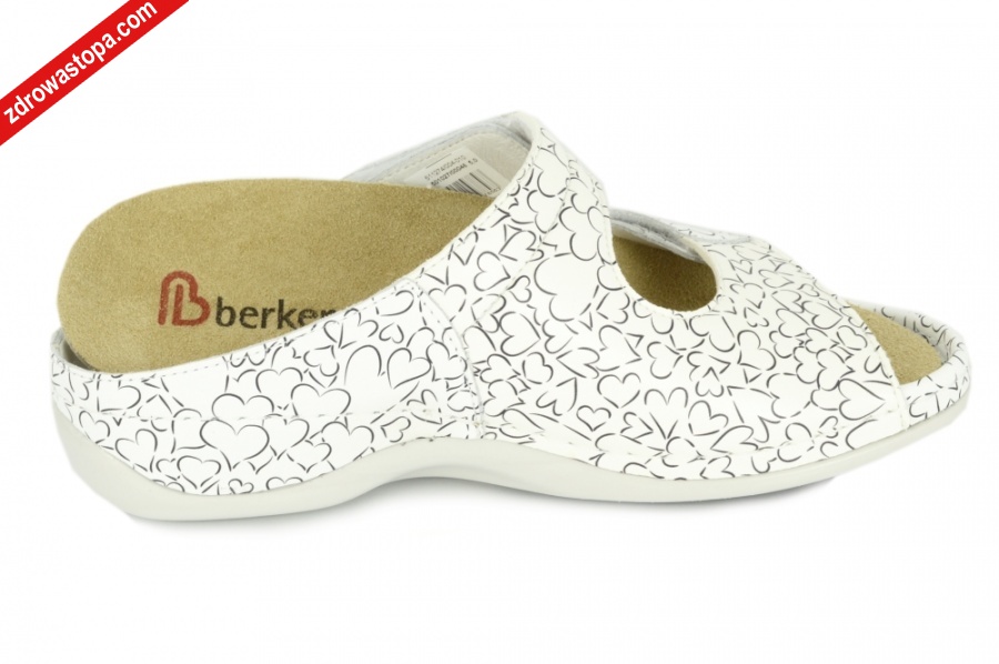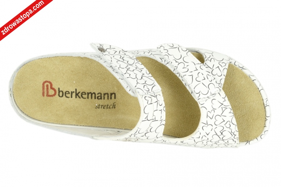 Dodatkowe informacje: Jest to obuwie niemieckiej firmy BERKEMANN istniejącej od 1885 roku z linii BERKOFLEX. Posiadają bardzo dobrze wyprofilowane wkładki wymienne przystosowane do prania. Wyścielone skórą garbowania roślinnego. Oryginalna pięciofazowa wkładka w podeszwie wewnętrznej oraz zapięcia na 2 rzepy zapewniają wiele możliwości regulacji. Sprawiają, że obuwie dobrze trzyma się na nodze i zapewnia najwyższy komfort noszenia. Dzięki wyjmowanej wkładce można stosować zamiennie wkładki ortopedyczne. Na wysokości haluksa klapek wykonany z materiału streczowego co dają duży komfort na obolałe wypukłości. Podeszwa lekka elastyczna nie ślizgająca się.