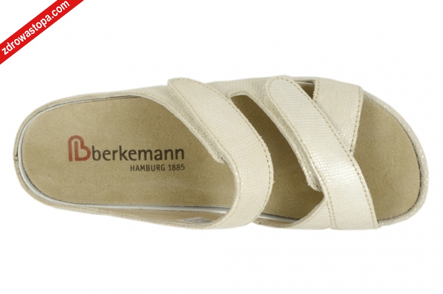 Jest to obuwie niemieckiej firmy BERKEMANN istniejącej od 1885 roku z linii BERKOFLEX. Posiadają bardzo dobrze wyprofilowane wkładki wymienne przystosowane do prania. Wyścielone skórą garbowania roślinnego. Oryginalna pięciofazowa wkładka w podeszwie wewnętrznej oraz zapięcia na rzepy zapewniają wiele możliwości regulacji. Sprawiają, że obuwie dobrze trzyma się na nodze i zapewnia najwyższy komfort noszenia. Dzięki wyjmowanej wkładce można stosować zamiennie wkładki ortopedyczne. Podeszwa lekka elastyczna nie ślizgająca się.