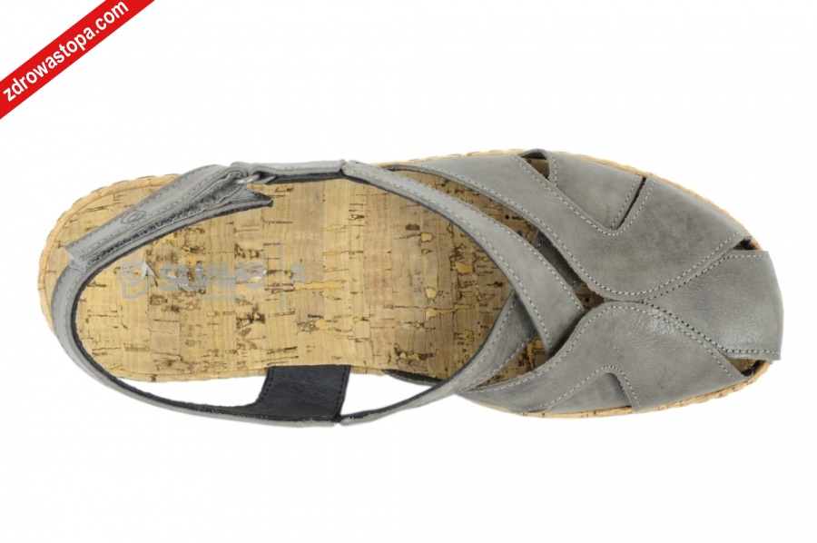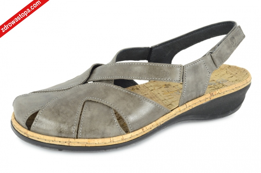 Dodatkowe informacje: Zakryte palce. Skórka bardzo miękka dla stóp wrażliwych. Zapinane na rzepe. Wysokość obcasa 30 mm. Wkładka wyjmowana, korkowa. W poszerzonej tęgości H. Spody bardzo lekkie i elastyczne, antypoślizgowe.