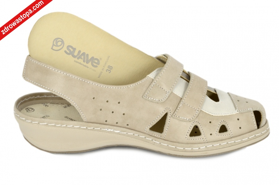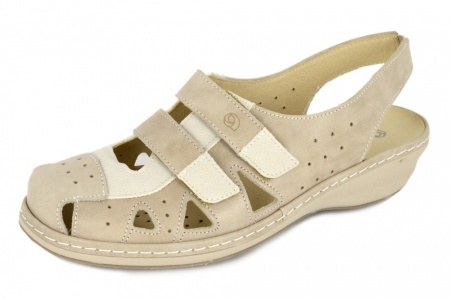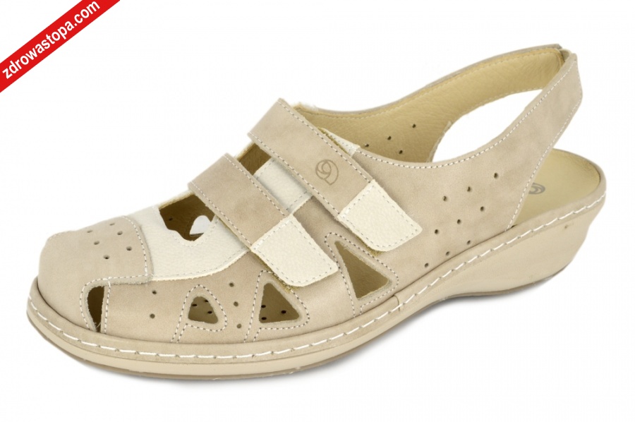 Dodatkowe informacje: Zakryte palce. Skórka bardzo miękka dla stóp wrażliwych. Zapinane na dwa rzepy, pasek na pięcie z rozciągającą taśmą. Wysokość obcasa 30 mm. Wkładka ze skóry naturalnej, wyjmowana. W poszerzonej tęgości H.