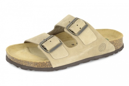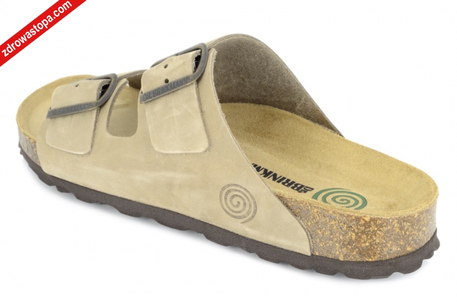 Dodatkowe informacje: cholewka skórzana, nubukowa, wyprofilowane ortopedyczne klapki regulowane na dwa paski z klamerką.