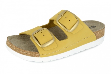 Dodatkowe informacje: cholewka skórzana, nubukowa, wyprofilowane ortopedyczne klapki regulowane na dwa paski z klamerką.