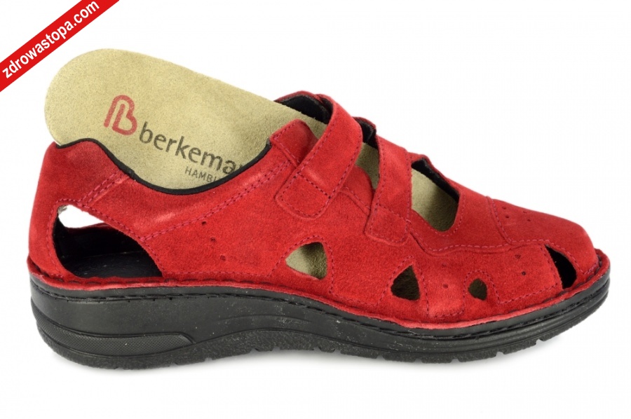 Jest to obuwie niemieckiej firmy BERKEMANN istniejącej od 1885 roku z linii BERKOFLEX. Posiada bardzo dobrze wyprofilowane wkładki wymienne przystosowane do prania. Ponadto posiadają punkty na piętach amortyzujące mikrowstrząsy. Oryginalna pięciofazowa wkładka w podeszwie wewnętrznej oraz zapięcie na dwa rzepy zapewnia dobrą regulację. Sprawiają, że obuwie dobrze trzyma się na nodze i zapewnia najwyższy komfort noszenia. Dzięki wyjmowanej wkładce można stosować zamiennie wkładki ortopedyczne. Podeszwa lekka, elastyczna, poszerzona, antypoślizgowa. Wnętrze buta wyłożone bardzo przyjemną tkaniną obuwniczą.