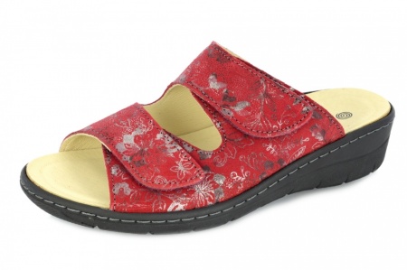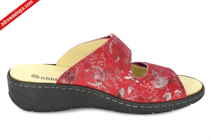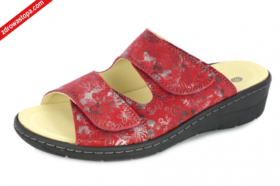 Dodatkowe informacje: wysokość klinu: 45 mm, zapięcie na dwie rzepy na podbiciu. Skórzana, wyjmowana wkładka profilowana z punktem na pięcie amortyzującym drgania. Lekkie i elastyczne spody.