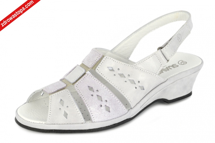 Dodatkowe informacje: Skórka bardzo miękka dla stóp wrażliwych. Zapinane na rzepę, gumki w przedniej części dopasowują się do szerokości stopy. Wysokość obcasa 50 mm. W poszerzonej tęgości H. Spody bardzo lekkie i elastyczne, antypoślizgowe.