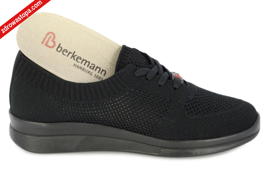 Dodatkowe informacje: Jest to obuwie niemieckiej firmy BERKEMANN istniejącej od 1885 roku. Posiadają bardzo dobrze wyprofilowane wkładki wymienne, ponadto posiadają punkty na piętach amortyzujące mikrowstrząsy. Wyścielone skórą garbowania roślinnego. Rozciągliwy i przewiewny materiał tekstylny zapewnia idealne dopasowanie do stopy bez ucisku wrażliwych miejsc. Obuwie dobrze trzyma się na nodze i zapewnia najwyższy komfort noszenia. Dzięki wyjmowanej wkładce można stosować zamiennie wkładki ortopedyczne. Podeszwa lekka elastyczna nie ślizgająca się.