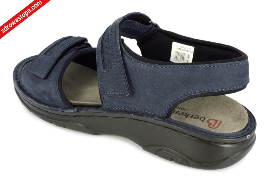 Jest to najnowsze obuwie niemieckiej firmy BERKEMANN istniejącej od 1885 roku. Posiadają bardzo dobrze wyprofilowane wkładki wymienne. Wyścielone skórą garbowania roślinnego. Oryginalna pięciofazowa wkładka w podeszwie wewnętrznej oraz zapięcia na dwa rzepy zapewniają dobrą regulację na wysokie podbicie. Sprawiają, że obuwie dobrze trzyma się na nodze i zapewnia najwyższy komfort noszenia. Dzięki wyjmowanej wkładce można stosować zamiennie wkładki ortopedyczne. Podeszwa lekka elastyczna nie ślizgająca się. Materiał wierzchni ze skóry nubukowej.