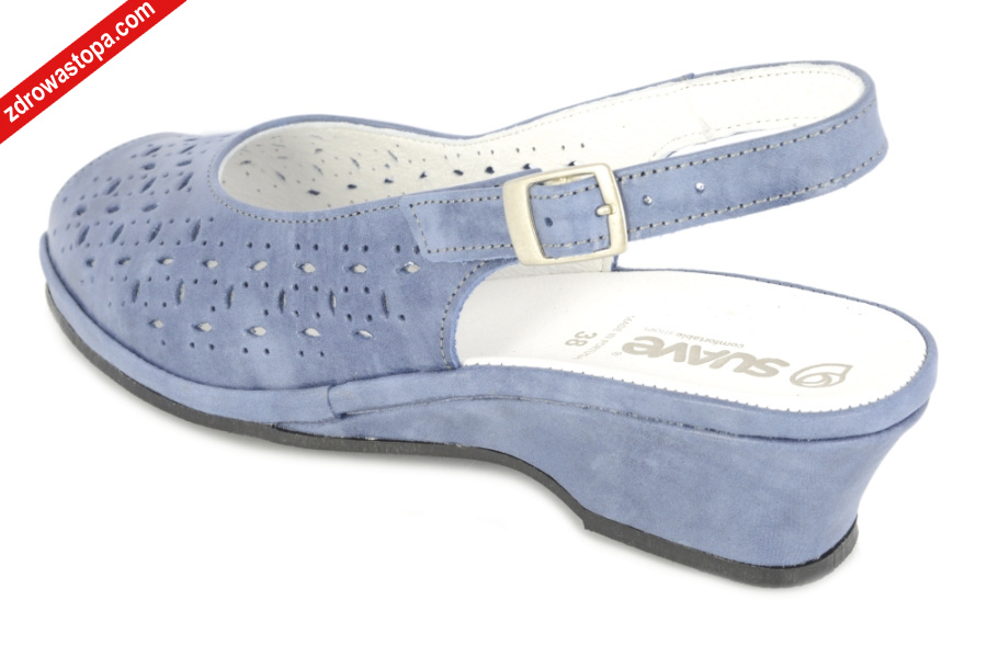 Dodatkowe informacje: klamerka do regulacji obiętości pięty. Jeden z wygodniejszych sandałów na lato. Skórka bardzo miękka dla stóp wrażliwych. Wysokość klinu 40 mm. Spód antypoślizgowy.