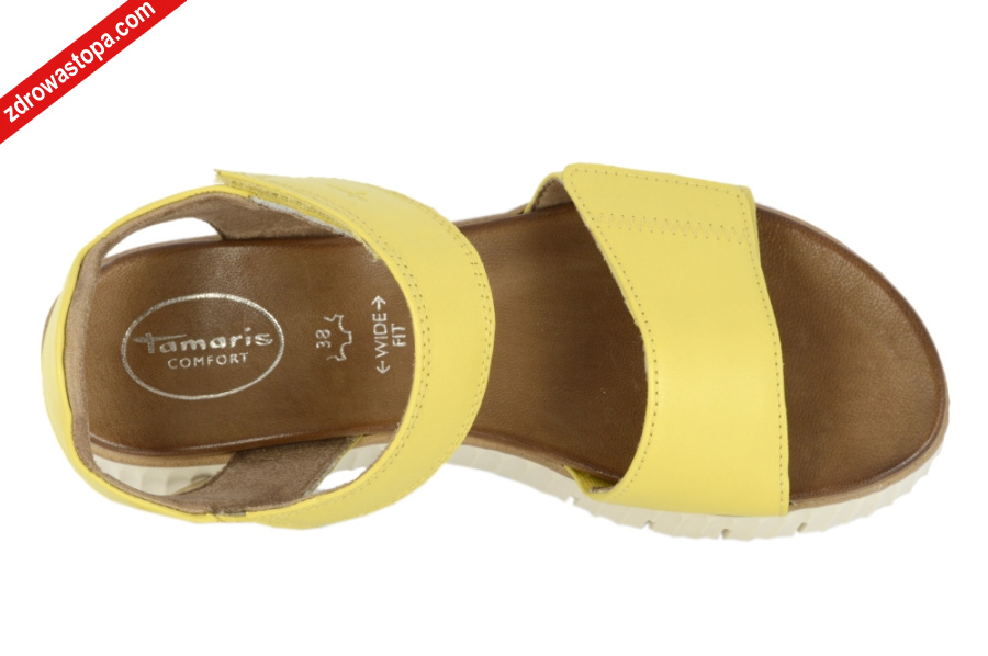 Dodatkowe informacje: wysokość koturna: 40 mm, wykonane z bardzo miękkiej skóry, zapięcie na dwie rzepy. Miękka skórzana wkładka. Lekkie spody.
