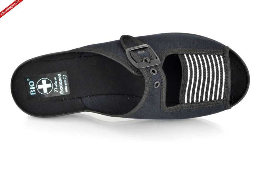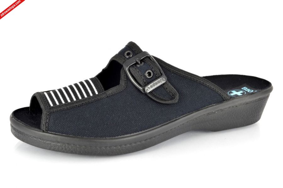 Dodatkowe informacje: Komfortowe kapcie typu Bio, odkryte palce, regulacja na podbiciu.