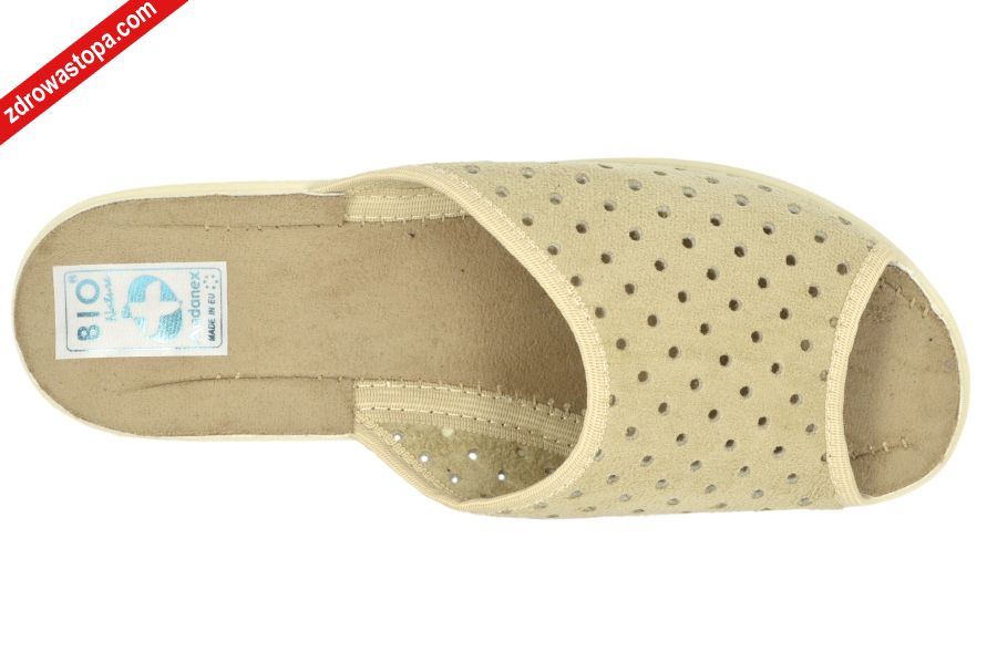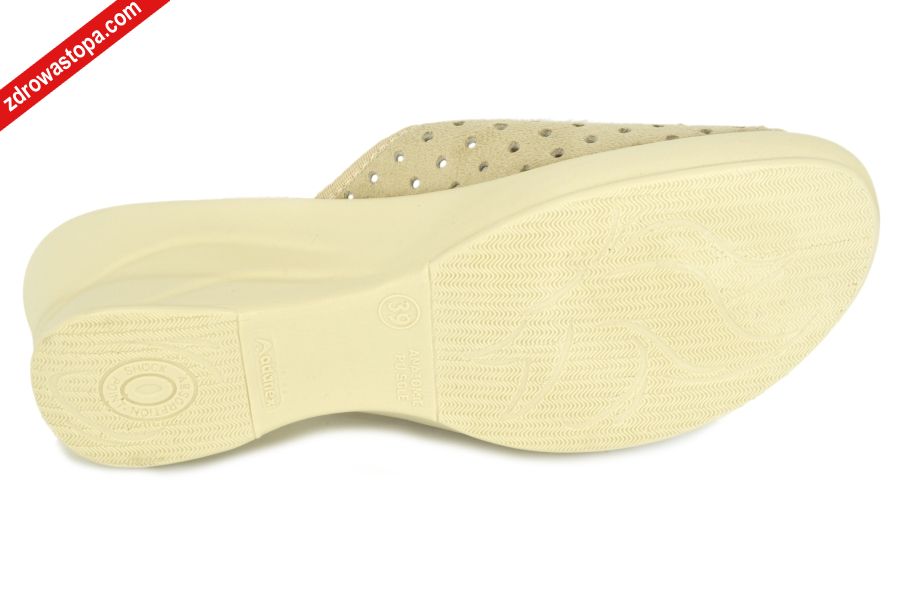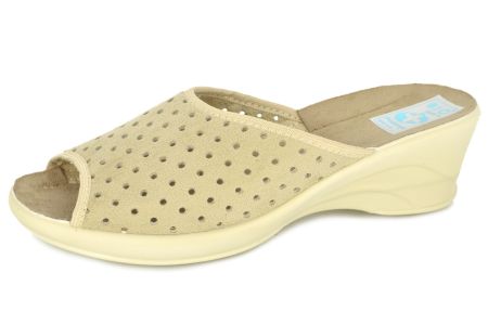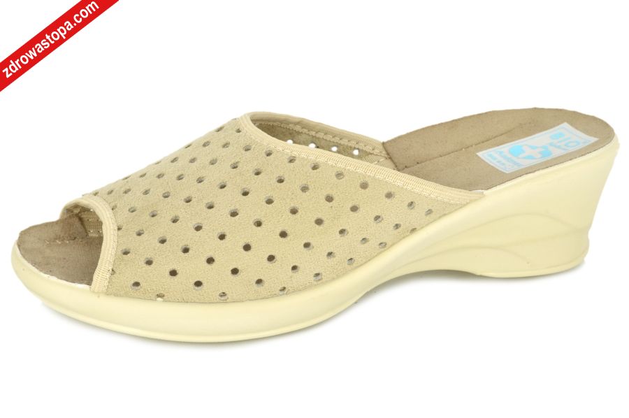 Dodatkowe informacje: Komfortowe klapki, odkryte palce, wysokość koturenka 55mm.