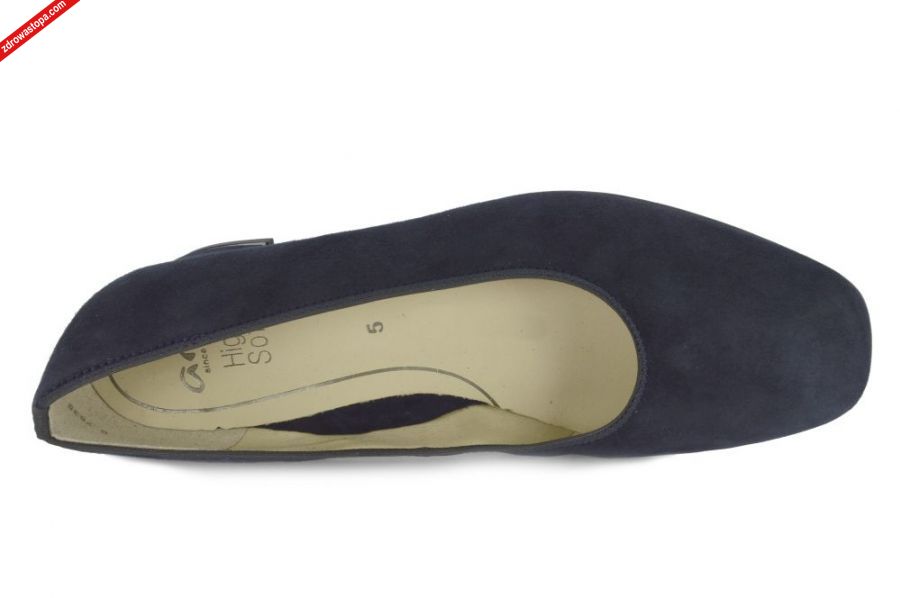 Dodatkowe informacje: Czółenko dookoła wykończone jest taśmą, która niweluje sztywność w podbiciu. Wykonane z miękkiej skóry zamszowej, skórzana wkładka HIGH SOFT, podeszwy elastyczne i antypośligowe. Wysokość obcasa 35 mm