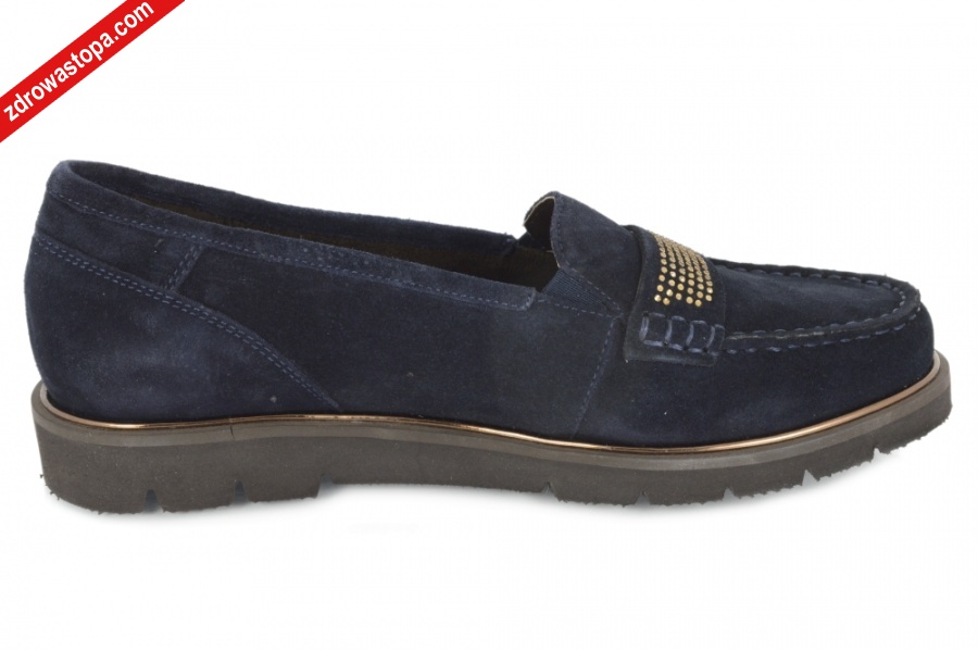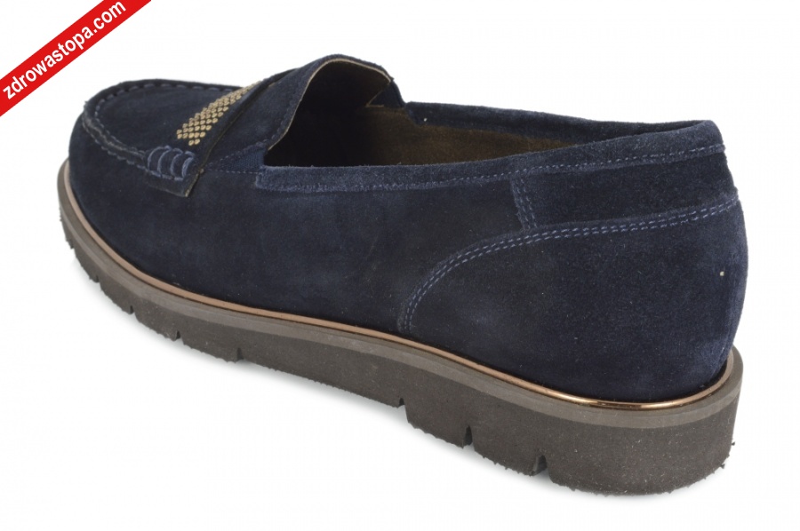 Dodatkowe informacje: Obuwie wykonane z miękkiej skóry naturalnej zamszowej, gumki dobrze dopasowują obuwie do stopy. Spody lekkie i antypoślizgowe. Wyjmowana miękka wkładka pozwala na zastąpienie jej własną np: ortopedyczną. Wysokość podwyższenia pod piętą 35mm.