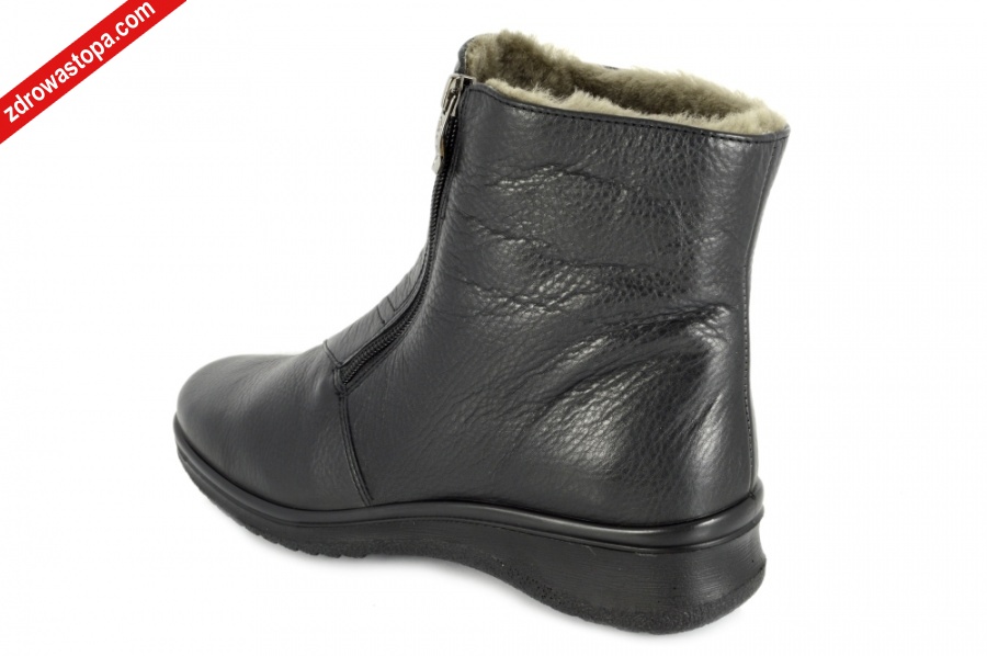 Dodatkowe informacje: Obuwie wykonane z bardzo miękkiej skóry naturalnej, suwak z boku ułatwiający zakładanie. Spody lekkie i antypoślizgowe. Wyjmowana miękka wkładka pozwala na zastąpienie jej własną np: ortopedyczną. Wysokość podwyższenia pod piętą 20mm.