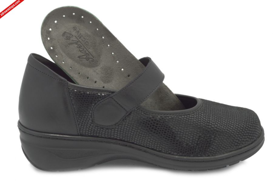 Dodatkowe informacje: Obuwie bardzo miękkie i elastyczne, strechowy materiał dopasowuje się do stopy i nie uciska wrażliwych miejsc, środek wykończony materiałem z pianką. Spód szeroki antypoślizgowy. Obuwie zapinane na rzepę dobrze dopasowuje się do stopy. Wyjmowana profilowana wkładka którą można zastąpić na swoją.