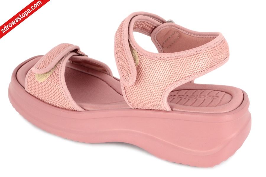 Dodatkowe informacje: wysokość klinu 45 mm, bardzo lekkie wykonane z naturalnych materiałów spody, sandały zapinane na dwie rzepy.