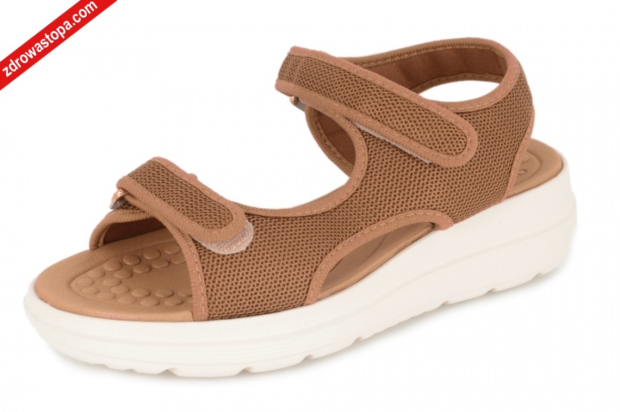 Dodatkowe informacje: wysokość klinu 45 mm, bardzo lekkie wykonane z naturalnych materiałów spody, sandały zapinane na dwie rzepy.
