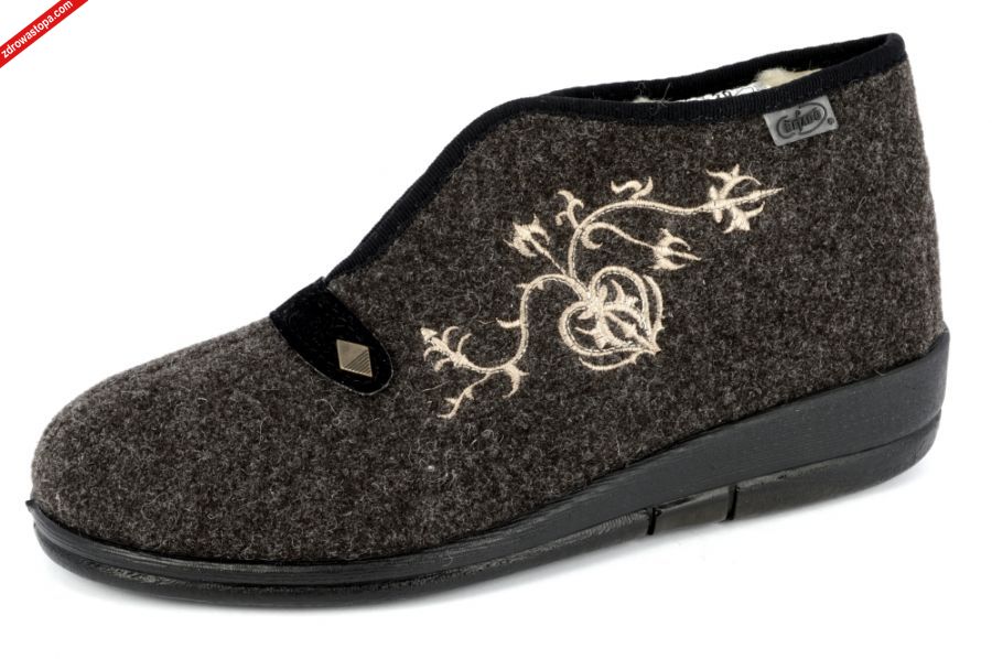 Dodatkowe informacje: Kolekcja obuwia z naturalnym futrem polecana jest szczególnie na długie, chłodne, zimowe wieczory. Klasyczna kolorystyka, łatwa wzuwalność. Miękkie i ciepłe obuwie zapewni każdym stopom wygodę i komfort użytkowania.