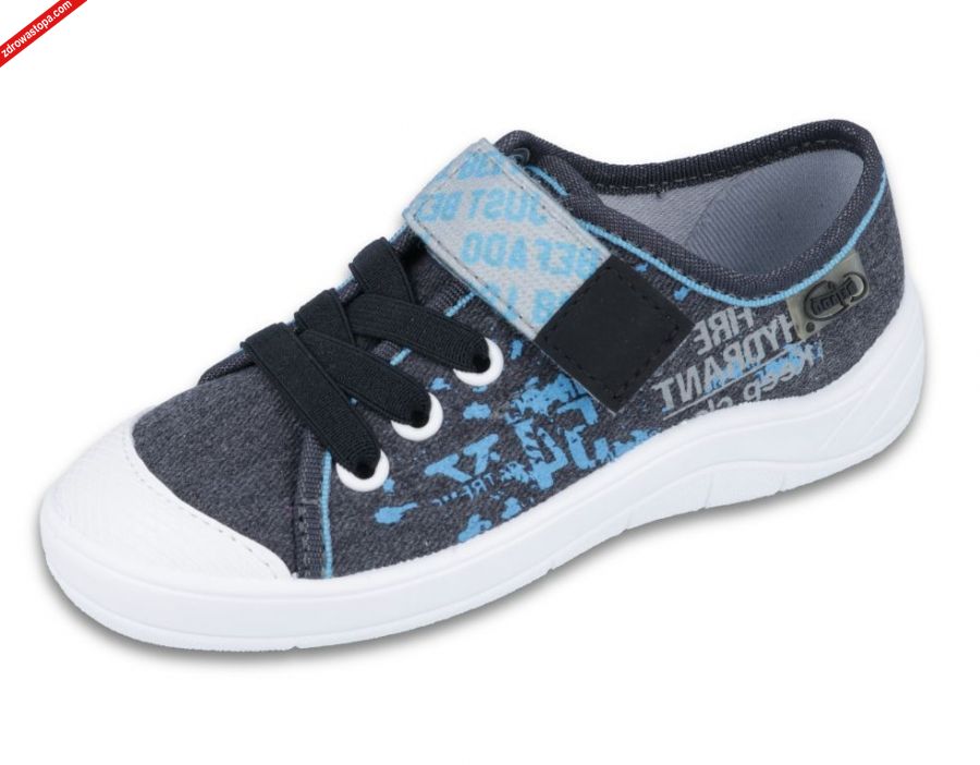Dodatkowe informacje: Modny, sportowy fason. Cholewki wykonane z przewiewnych tkanin bawełnianych. Lekka, elastyczna, wyprofilowana podeszwa idealnie dopasowuje się do stopy umożliwiając każdy rodzaj aktywnej zabawy. Dziecko łatwo może je założyć samodzielnie.