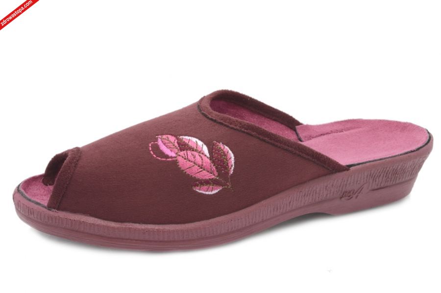 Dodatkowe informacje: Kolorystyka oraz aplikacje zgodne z najnowszymi trendami mody. Przeznaczone do użytku zarówno domowego jak i wyjściowego. Zastosowany na podeszwie system lekkiego i elastycznego PU sprawia, że podczas chodzenia amortyzowane są mikrowstrząsy, a dzięki odpowiedniej wysokości i wyprofilowaniu podeszwy utrzymana jest prawidłowa postawa ciała. Model z odkrytym palcem.
