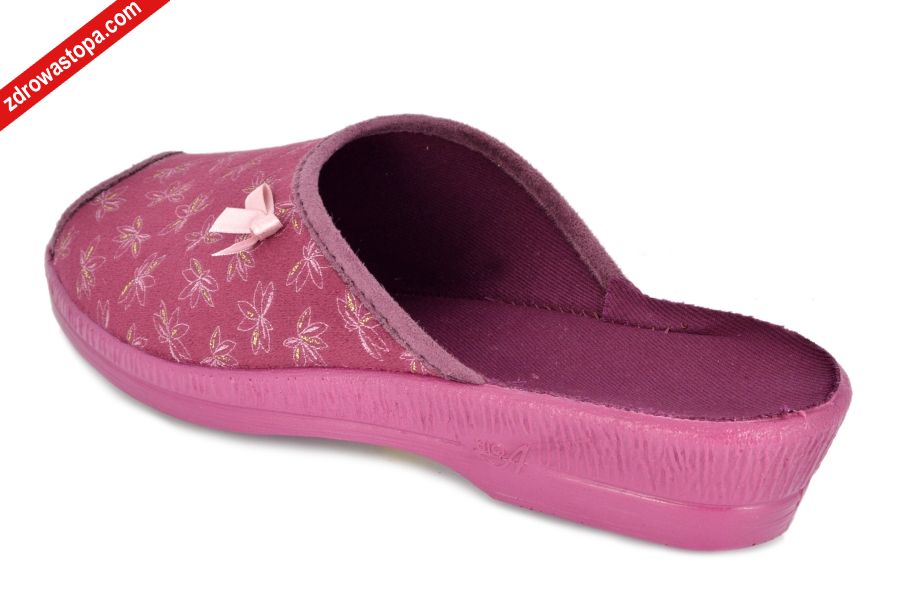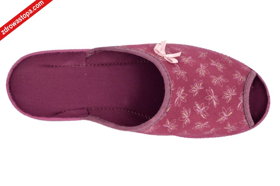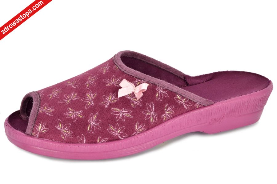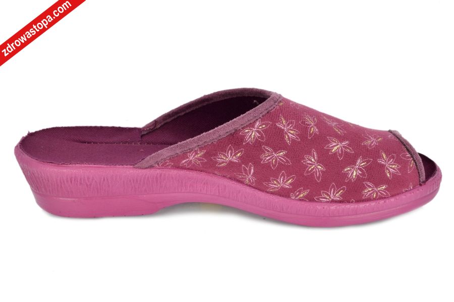 Dodatkowe informacje: Kolorystyka oraz aplikacje zgodne z najnowszymi trendami mody. Przeznaczone do użytku zarówno domowego jak i wyjściowego. Zastosowany na podeszwie system lekkiego i elastycznego PU sprawia, że podczas chodzenia amortyzowane są mikrowstrząsy, a dzięki odpowiedniej wysokości i wyprofilowaniu podeszwy utrzymana jest prawidłowa postawa ciała. Model z odkrytym palcem.