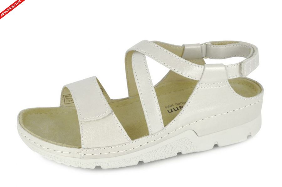 Dodatkowe informacje: Jest to obuwie niemieckiej firmy BERKEMANN istniejącej od 1885 roku. Sandały posiadają bardzo dobrze wyprofilowane wkładki skórzane. Podeszwa elastyczna nie ślizgająca się. Paski na pięcie i w palcach zapinane na rzep co pozwala na idealne dopasowanie do stopy. Wysokość klinu: 45 mm.