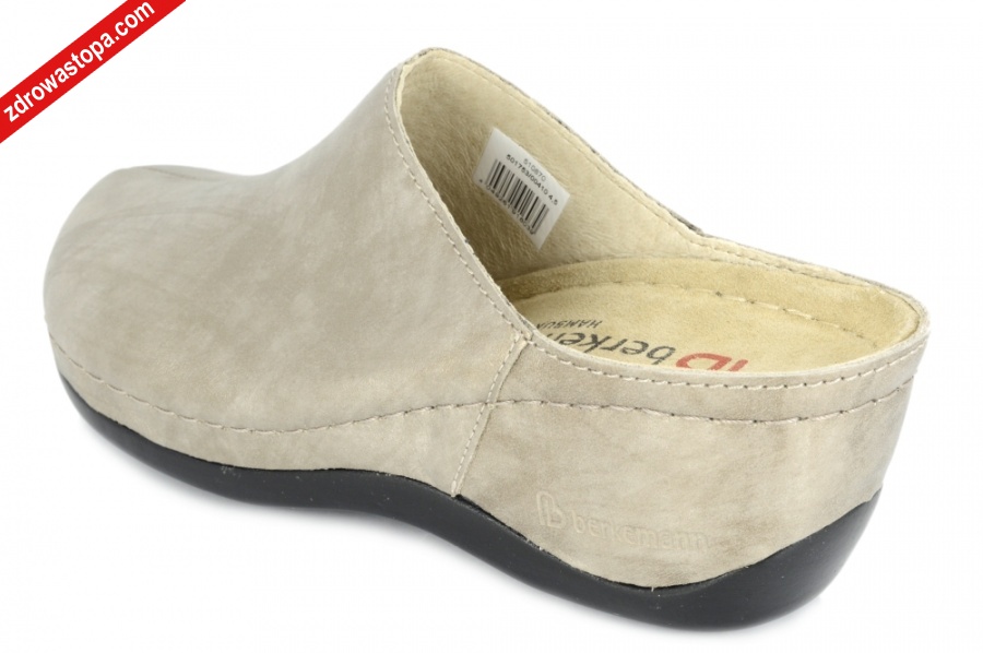 Jest to obuwie niemieckiej firmy BERKEMANN istniejącej od 1885 roku z linii BERKOFLEX, wyścielone skórą garbowania roślinnego. Odpowiednie wyprofilowanie sprawia stabilność klapka. Podeszwa lekka, elastyczna i antypoślizgowa.