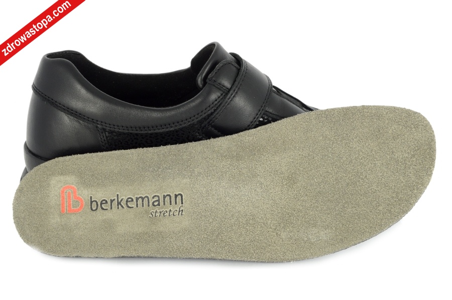 Jest to obuwie niemieckiej firmy BERKEMANN istniejącej od 1885 roku z wyjmowaną wkładką skórzaną garbowania roślinnego. Odpowiednie wyprofilowanie wkładki jak i też podeszwy sprawia stabilność półbuta. Podeszwa lekka, elastyczna i antypoślizgowa. Wierzch obuwia wykonany z skóry lico (bardzo miękkiej) plus stretch umożliwiający dopasowanie do każdej stopy. Obuwie tęgości K (szerokie) nie powodujące żadnego ucisku dla stopy. Zapinane na rzepa. W miejscach w których mogą wystąpić, ewentualne haluksów bardzo miękki strecz.