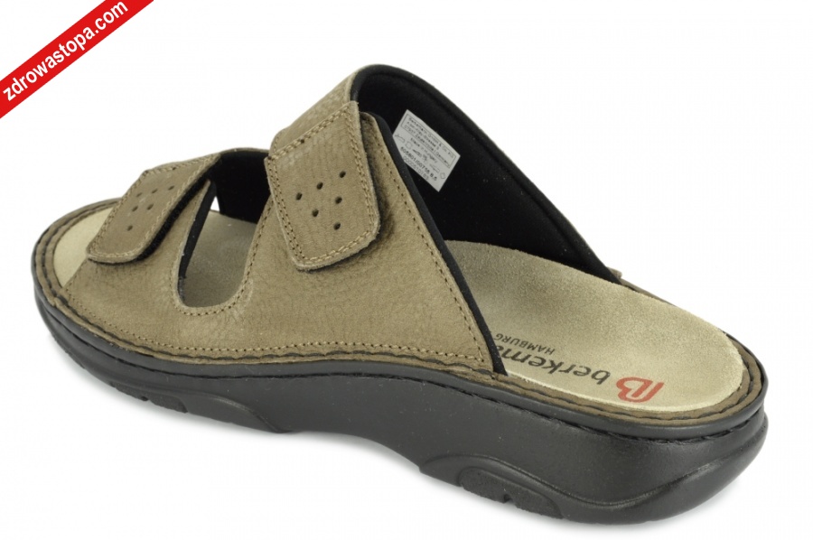 Jest to najnowsze obuwie niemieckiej firmy BERKEMANN istniejącej od 1885 roku. Posiadają bardzo dobrze wyprofilowane wkładki wymienne. Wyścielone skórą garbowania roślinnego. Oryginalna pięciofazowa wkładka w podeszwie wewnętrznej oraz zapięcia na dwa rzepy zapewniają dobrą regulację na wysokie podbicie. Sprawiają, że obuwie dobrze trzyma się na nodze i zapewnia najwyższy komfort noszenia. Dzięki wyjmowanej wkładce można stosować zamiennie wkładki ortopedyczne. Podeszwa lekka elastyczna nie ślizgająca się.