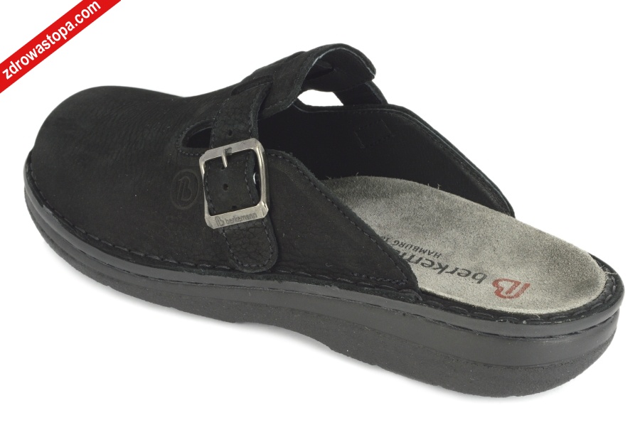 Dodatkowe informacje: Jest to najnowsze obuwie niemieckiej firmy BERKEMANN istniejącej od 1885 roku. Posiadają bardzo dobrze wyprofilowane wkładki wymienne. Wyścielone skórą garbowania roślinnego. Oryginalna pięciofazowa wkładka w podeszwie wewnętrznej oraz zapięcie na klamerkę zapewnia dobrą regulację na wysokie podbicie. Sprawiają, że obuwie dobrze trzyma się na nodze i zapewnia najwyższy komfort noszenia. Dzięki wyjmowanej wkładce można stosować zamiennie wkładki ortopedyczne. Podeszwa lekka elastyczna nie ślizgająca się.