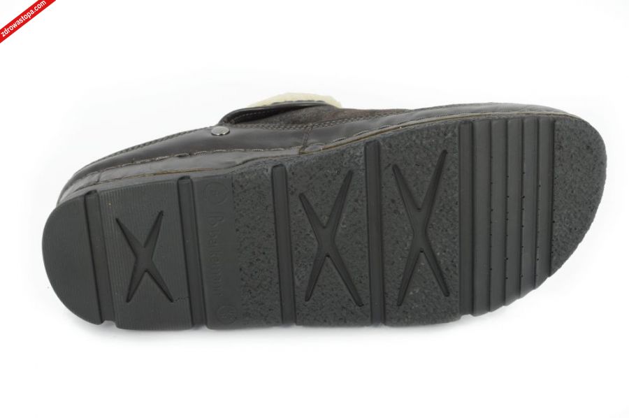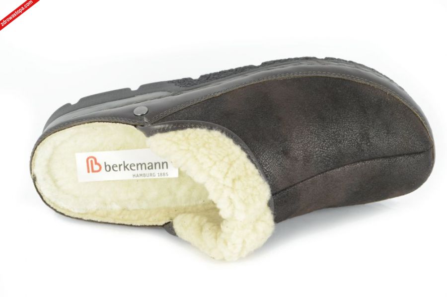 Dodatkowe informacje:Jest to obuwie niemieckiej firmy BERKEMANN istniejącej od 1885 roku. Posiadają bardzo dobrze wyprofilowane spody. Podeszwa gruba, elastyczna nie ślizgająca się z punktem na pięcie amortyzującym drgania, spód idealnie odizolowuje stopę od zimnej powierzchni. Obuwie wykonane z naturalnej skóry nubukowej - Doubleface. Wewnątrz klapka ocieplina z naturalnej wełny.
