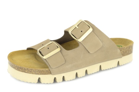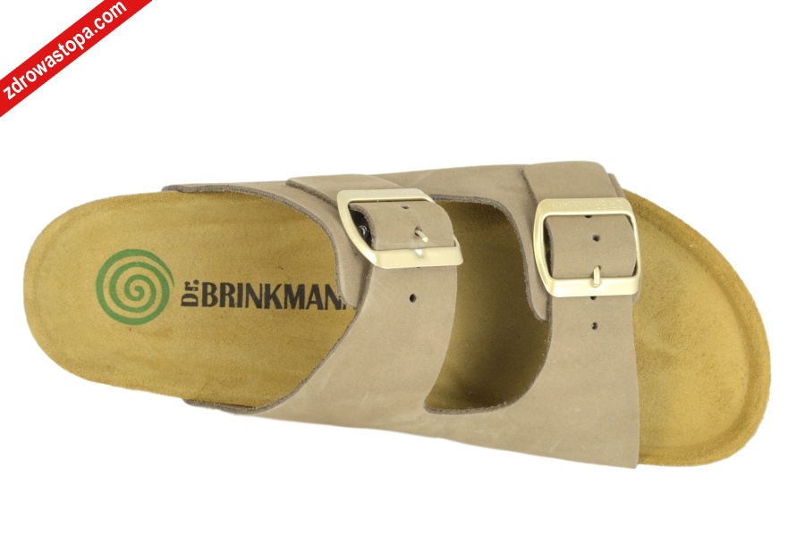 Dodatkowe informacje: cholewka skórzana, nubukowa, wyprofilowane ortopedyczne klapki regulowane na dwa paski z klamerką.